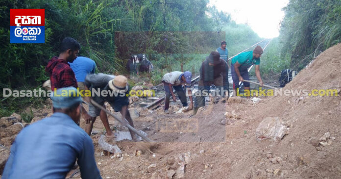 මේ වනවිටත් දුම්රිය මාර්ගයට කඩා වැටුණු පස් ඉවත්කිරීමේ කටයුතුවල දුම්රිය සේවකයින් නිරතව සිටින බව අප වාර්තාකරු සඳහන් කළා.