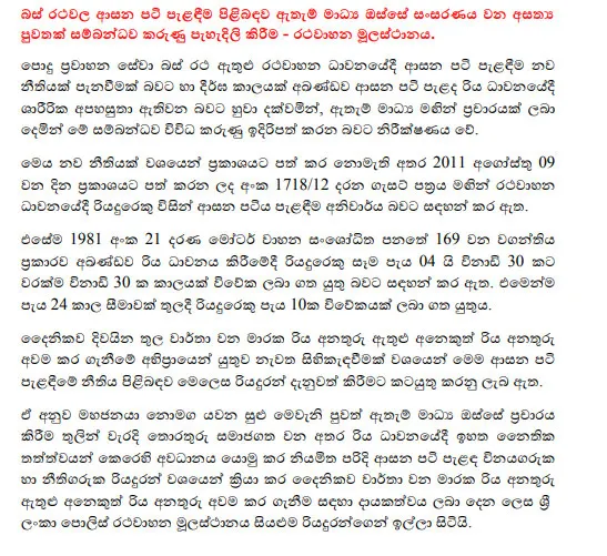බස් රථවල ආසන පටි පැළඳීම සම්බන්ධ පිළිබඳව පැතිර යන අසත්ය පුවතක් පිළිබඳව පොලිසිය කරුණු පැහැදිලි කිරීමක් සිදුකර තිබෙනවා.