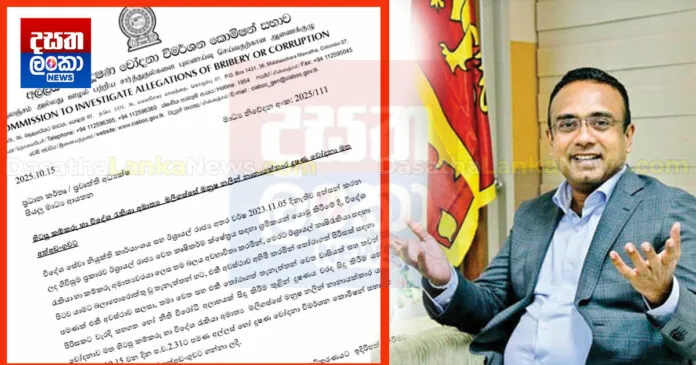 විදේශ සේවා නියුක්ති කාර්යාංශය සහ ඊශ්රායල් රාජ්ය අතර 2023 වසරේ දී අත්සන් කරන ලද ගිවිසුම ප්රකාරව ඊශ්රායල් රාජ්ය වෙත කෘෂිකර්ම ක්ෂේත්රය සඳහා ශ්රමිකයන් යොමු කිරීමේ දී, විදේශ රැකියා හා කම්කරු අමාත්යවරයා ලෙස තම බලය අවභාවිතා කරමින් කිරීම සම්බන්ධව ඔහුව අත්අඩංගුවට ගත බව අල්ලස් කොමිසමා පවසනවා.