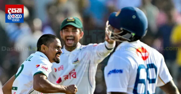 පන්දු යැවීමේ දී තරිඳු රත්නායක බංග්ලාදේශ දෙවන ඉනිමේ කඩුලු 03ක් බිඳ දැමුවා.