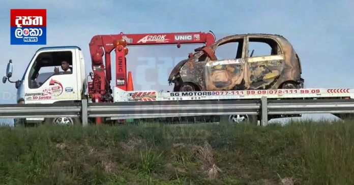 අධිවේගී මාර්ගයේ මෝටර් රථයක් ගිනිගනී