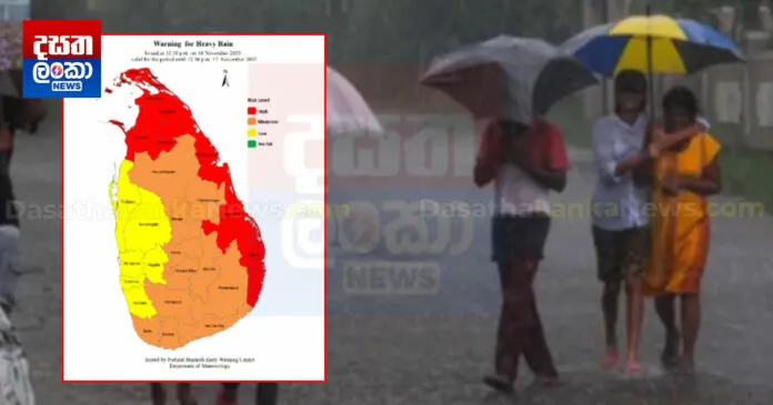 කාලගුණ විද්‍යා දෙපාර්තමේන්තුව විසින් තද වැසි පිළිබඳ අවවාදාත්මක නිවේදනයක් නිකුත් කර තිබෙනවා.