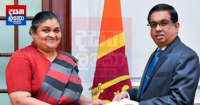 ඊට අදාළ පත්වීම් ලිපිය ජනාධිපති ලේකම් ආචාර්ය නන්දික සනත් කුමානායක අද (28) පෙරවරුවේ ජනාධිපති කාර්යාලයේදී ඇයට වෙත භාර දරනු ලැබුවා.