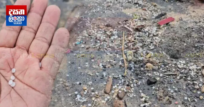 ප්රධාන වශයෙන් සුදු පැහැයෙන් දැකගත හැකි වූ ප්ලාස්ටික් කොටස් මුහුදු රළත් සමග ගසාගෙන පැමිණ වෙරළ තීරය පුරා විසිරී තිබෙනු දැකිය හැකි වුණා.