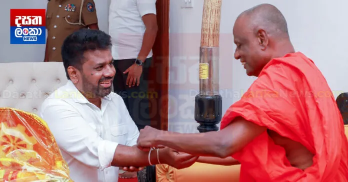 ජනාධිපති අනුර කුමාර දිසානායක ඔයේ (07) අටමස්ථානාධිපති නුවර කලාවියේ ප්රධාන සංඝනායක අතිපූජ්ය පල්ලේගම හේමරතන නායක හිමිපාණන් වහන්සේ බැහැදැක කෙටි පිළිසඳරක නිරත වුණා.