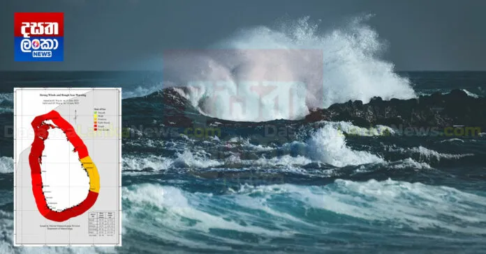 තද සුළං සහ රළු මුහුද පිළිබඳව කාලගුණ විද්‍යා දෙපාර්තමේන්තුව අනතුරු ඇඟවීමේ රතු නිවේදනයක් නිකුත් කර තිබෙනවා.