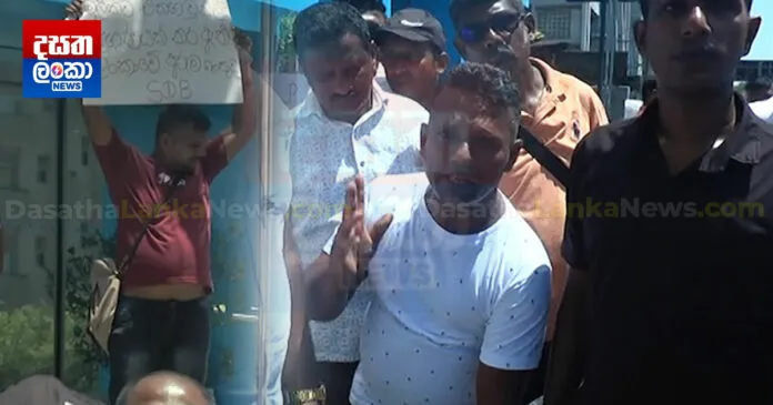ආබාධිත රණවිරුවන් සහ රජයේ සේවකයන් ඇතුළු පිරිසක් නාරාහෙන්පිට සණස ප්රධාන කාර්යාලය ඉදිරිපිට විරෝධතාවයක නිරත වුණා.