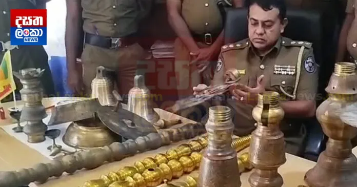 සැකකාර යුවළ විසින් සොරාගෙන පිත්තල කඩවලට අලෙවි කර තිබූ දොළොස් මහේ පහනක්, ඝන්ටාර තුනක්, දේවාල පහනක්, රන්වැටවල් දෙකක රන් ආලේපිත කණු 04ක් සහ කුඩා පිත්තල පහන් 06ක් සොයා ගත් බව පොලිසිය පැවසුවා.