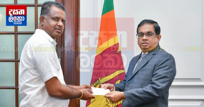 දමින්ද දිසානායක මහතා විසින් රුපියල් මිලියනයක චෙක්පත ජනාධිපති ලේකම් ආචාර්ය නන්දික සනත් කුමානායක මහතාට ජනාධිපති ලේකම් කාර්යාලයේදී පිළිගන්වනු ලැබුවා.