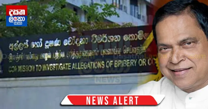 අද (03) පෙරවරුවේ හිටපු අමාත්යවරයා අල්ලස් හෝ දූෂණ විමර්ශන කොමිෂන් සභාවට පැමිණියේ ඊට පෙර ප්රකාශයක් ලබාදීමට පැමිණෙන ලෙසට කළ දැනුම්දීමක ප්රතිඵලයක් ලෙසයි.