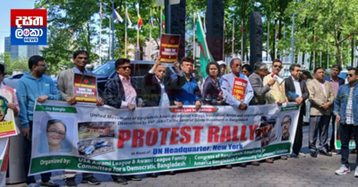 අවාමි ලීගය පක්ෂයට පනවා ඇති තහනමට එරෙහිව බංග්ලාදේශ ජාතිකයන් විශාල පිරිසක් නිව්යෝර්ක් හි එක්සත් ජාතීන්ගේ ගොඩනැගිල්ල ඉදිරිපිට විරෝධතාවක නිරත වුණා.