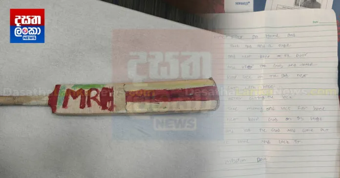 එමෙන්ම ඔහුගේ සැලැස්ම විස්තර කරන ලද අතින් ලියන ලද සටහනක්, සොරකම් කරන ලද ක්රිකට් පිත්ත සහ වරද සිදු වූ අවස්ථාවේ විත්තිකරු ඇඳ සිටි ඇඳුම් ද සොයා ගැනීමට විමර්ශනය සිදුකරන පොලිස් නිලධාරීන්ට හැකිව තිබෙනවා.