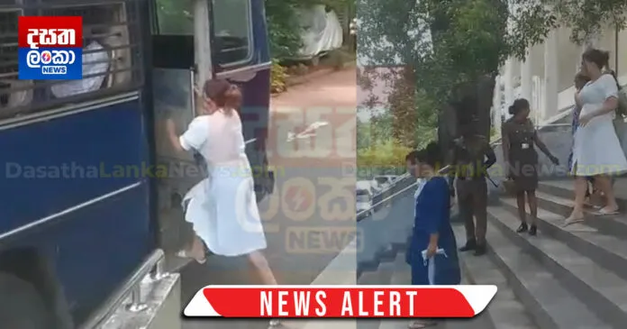 සුදු පැහැති ගවුමකින් සැරසි සිටි ඇයව මීගමුව බන්ධනාගාරය මගින් අධිකරණයට ඉදිරිපත් තිබුණා.