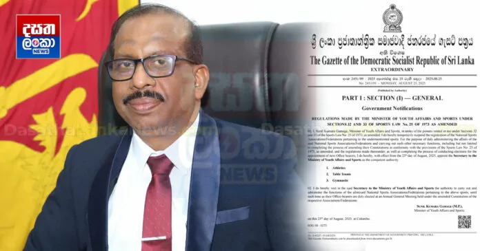 ඊයේ (25) ක්‍රීඩා අමාත්‍යාංශය විසින් විශේෂ ගැසට් පත්‍රයක් නිකුත් කරමින් මේ බව සඳහන් කළා.