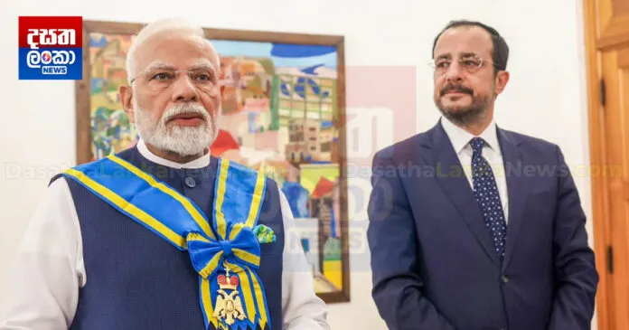 අගමැති නරේන්ද්ර මෝදිට සයිප්රසයෙන් පිරිනැමුණේ; ඉහළම සිවිල් ගෞරවය වන ‘ග්රෑන්ඩ් ක්රොස් ඔෆ් ද ඕඩර් ඔෆ් මැකරියෝස් III’ සම්මානය බවත් වාර්තා වනවා.
