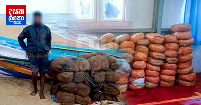 ඉන්දියාවේ සිට බෝට්ටුවක් උපයෝගී කරගනිමින් රුපියල් කෝටි 12කට අධික වටිනාකමක් සහිත කේරළ ගංජා කිලෝග්රෑම් 304කුත් ග්රෑම් 600ක ප්රමාණයක් රැගෙන ආ පුද්ගලයෙකු අත්අඩංගුවට ගෙන තිබෙනවා.