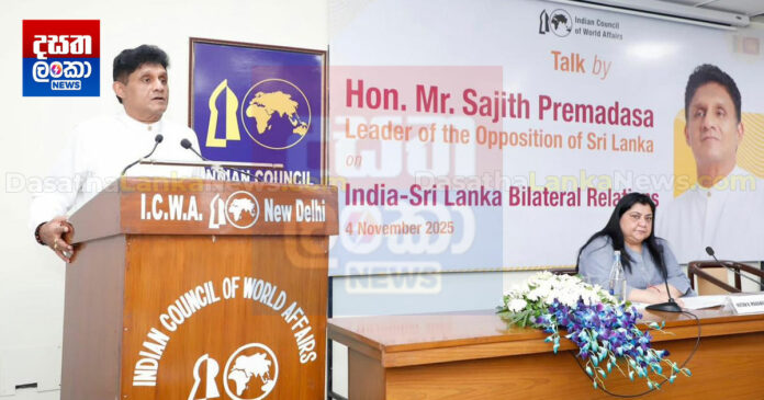 මේ දිනවල ඉන්දියාවේ නිල සංචාරයක නිරතව සිටින විපක්ෂ නායක සජිත් ප්රේමදාස නව දිල්ලියේ පැවති ඉන්දීය ලෝක කටයුතු පිළිබඳ කවුන්සිලයේ (Indian Council of World Affairs-ICWA) දේශනයක් පවත්වනු ලැබුවා.