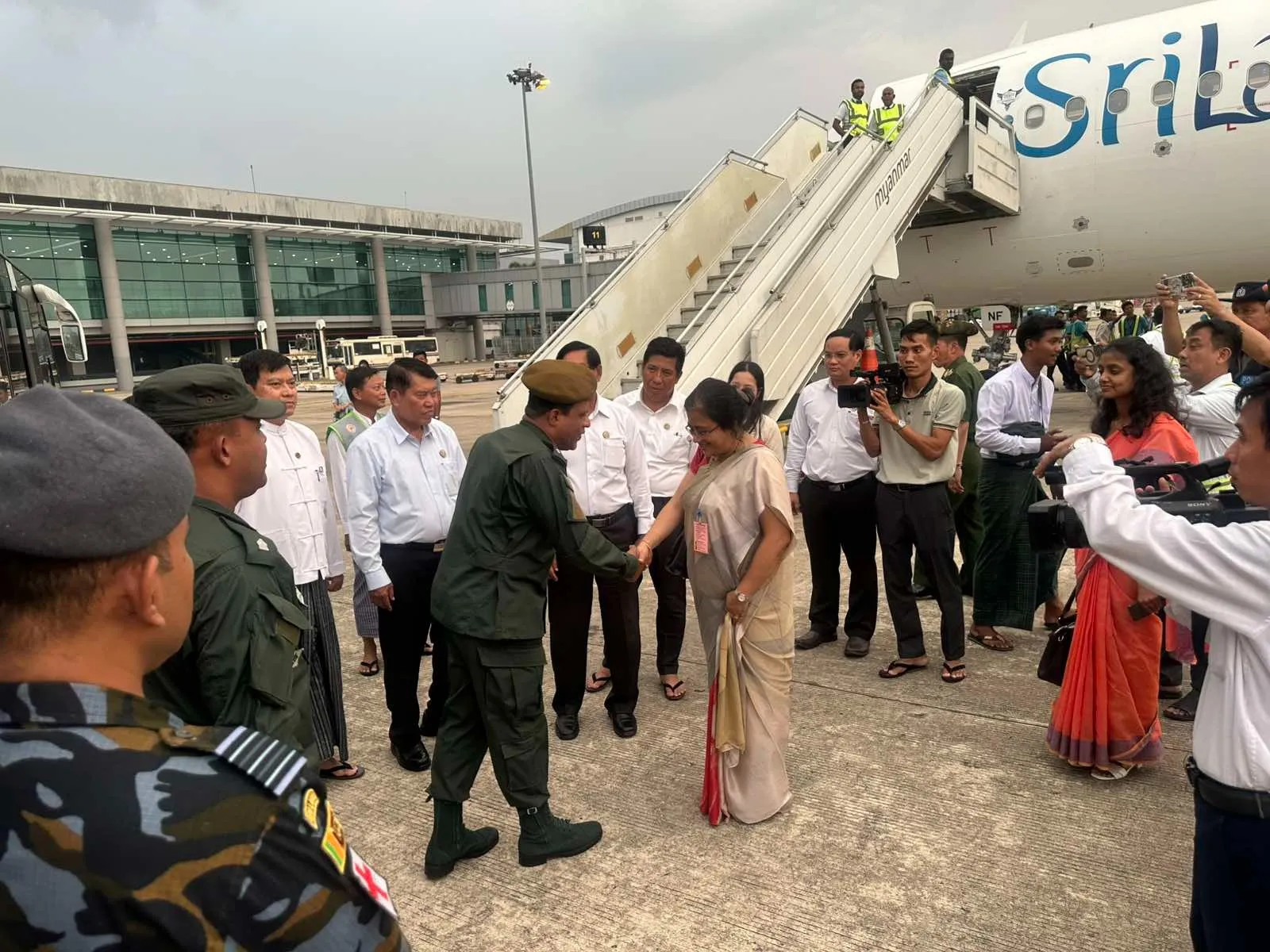 මියන්මාරයේ ශ්රී ලංකා තානාපති, යැංගොන් කලාපීය ප්රධාන අමාත්ය U Soe Thein, යැංගොන් නගර සංවර්ධන කමිටුවේ සභාපති (නගරාධිපති) U Bo Htay, යැංගොන් කලාප සමාජ කටයුතු අමාත්ය U Htay Aung, යැංගොන් කලාප ආරක්ෂක සහ දේශ සීමා කටයුතු අමාත්ය කර්නල් Win Tint, විදේශ කටයුතු අමාත්යාංශයේ උපායමාර්ගික අධ්යයන සහ පුහුණු දෙපාර්තමේන්තුවේ අධ්යක්ෂ ජෙනරාල් U Zaw Phyo Win සහ සමාජ සුභසාධනය, සහන සේවා සහ නැවත පදිංචි කිරීමේ අමාත්යාංශයේ ආපදා කළමනාකරණ දෙපාර්තමේන්තුවේ අධ්යක්ෂ U Than Soe ඇතුළු මියන්මාර බලධාරීන් පිරිසක් ශ්රී ලංකා සහන සේවා කණ්ඩායම පිළිගනු ලැබුවා.