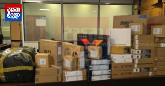 ඔහු විසින් රැගෙන ආ ගමන් මළු තුළ ලැප්ටොප් පරිගණක 35ක්, ටැබ් පරිගණක 03ක්, අයිෆෝන් 10ක්, මෙමරි කාඩ්චිප් 100 ක් සහ සපත්තු තොගයක් තිබූ බවයි පැවසෙන්නේ.