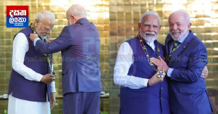 බ්රසීලයේ ඉහළම සිවිල් ගෞරවය වන ‘ග්රෑන්ඩ් කොලර් ඔෆ් ද නැෂනල් ඕඩර් ඔෆ් ද සදර්න් ක්රොස්’ සම්මානය අඟහරුවාදා බ්රසීල ජනාධිපති ලූලා විසින් අගමැති නරේන්ද්ර මෝදි වෙත පිරිනමනු ලැබුවා.