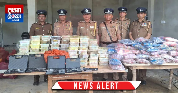 තංගල්ල ප්රදේශයේ දී අයිස් සහ හෙරොයින් මත්ද්රව්ය ප්රවාහන කරමින් තිබිය දී අත්අඩංගුවට ගැනුණු ලොරි රථය තුළ තිබී ගිනි අවි හයක් ද සොයාගෙන ඇති බව වාර්තා වනවා.